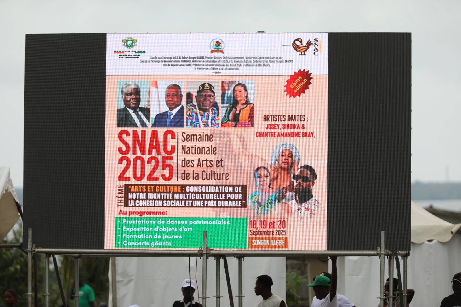 Songon, le 19 septembre 2025 – La cérémonie officielle de la 8ᵉ édition de la Semaine Nationale des Arts et de la Culture (SNAC) s’est tenue ce jour à Songon, en présence de plusieurs présidents d'institutions, membres du gouvernement, autorités coutumières, artistes, artisans, ainsi que les 32 directions régionales de la culture...