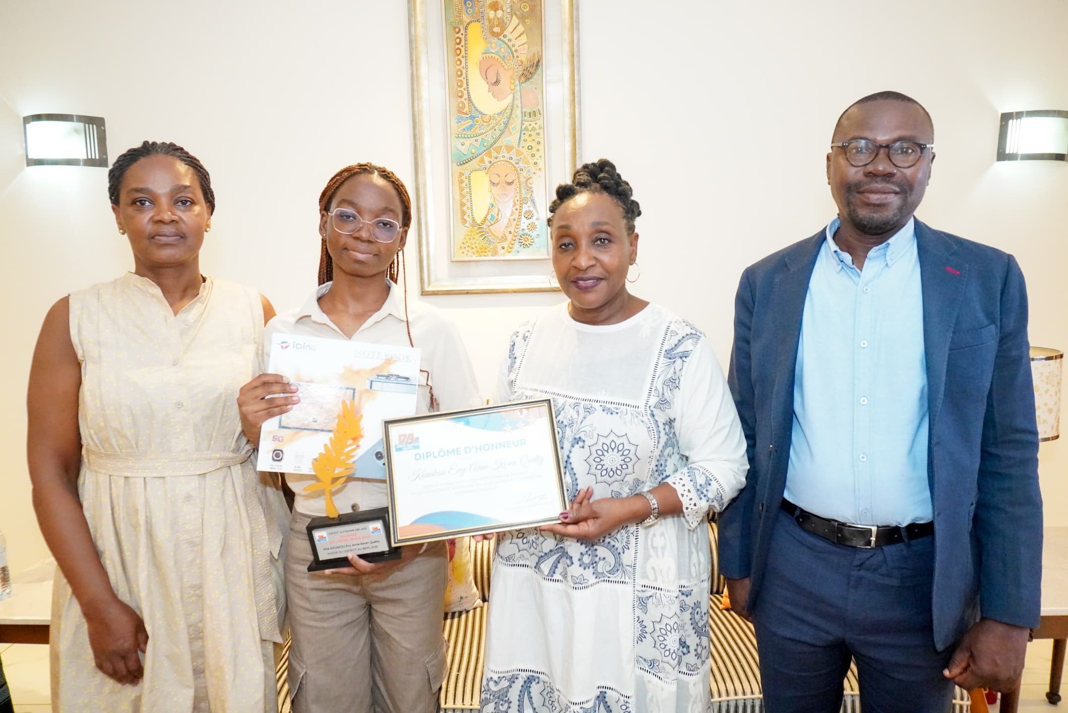 Le mardi 20 août 2025, à sa résidence de Toumodi, Madame la Ministre, Gouverneure du District Autonome des Lacs, a accordé une audience à Mlle KOUAKOU ENY ANNE KEREN QUETTY, élève au Collège Catholique Saint Michel de Toumodi, distinguée major du District Autonome des Lacs au BEPC 2025 et deuxième meilleure candidate au plan national. Au cours de cette rencontre empreinte de fierté et d’émotion, Madame la Ministre, Gouverneure a tenu à féliciter chaleureusement la lauréate pour l’excellence de son parcours et les efforts soutenus qui l’ont conduite à ce brillant résultat. Elle a exprimé sa satisfaction de voir que son engagement constant en faveur de la promotion de l’excellence scolaire produit des résultats concrets et durables.Revenant sur la dynamique éducative enclenchée dans le District, la Ministre Gouverneure a souligné que les mesures mises en œuvre, notamment la lutte contre les congés scolaires anticipés et le suivi rigoureux du travail des élèves et enseignants, portent leurs fruits. Les résultats scolaires enregistrés ces dernières années en témoignent de manière éloquente.L’année 2025 marque d’ailleurs une étape symbolique : le District Autonome des Lacs compte deux majors classés seconds nationaux, l’un au CEPE (originaire de Daoukro) et l’autre au BEPC (originaire de Toumodi). Une performance exceptionnelle qui consacre la vision éducative de la Ministre, Gouverneure et confirme que le District s’impose désormais comme le District de l’Excellence.Madame la Ministre, Gouverneure a enfin exhorté la lauréate à demeurer un modèle pour la jeunesse du District et à poursuivre sur la voie de l’excellence, avant de réaffirmer sa conviction que les prochaines années verront encore de meilleures performances scolaires dans l’ensemble des localités placées sous sa responsabilité.